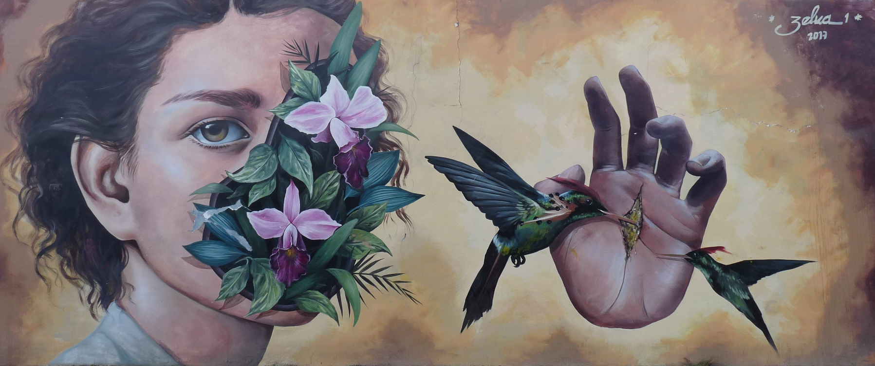 Les images qui apparaissent sur le site sont des photos de peintures murales prises à Moyobamba, au Pérou, en 2019